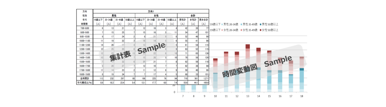 ・集計表は、時間帯ごと、方向ごと、属性ごとに取りまとめいたします